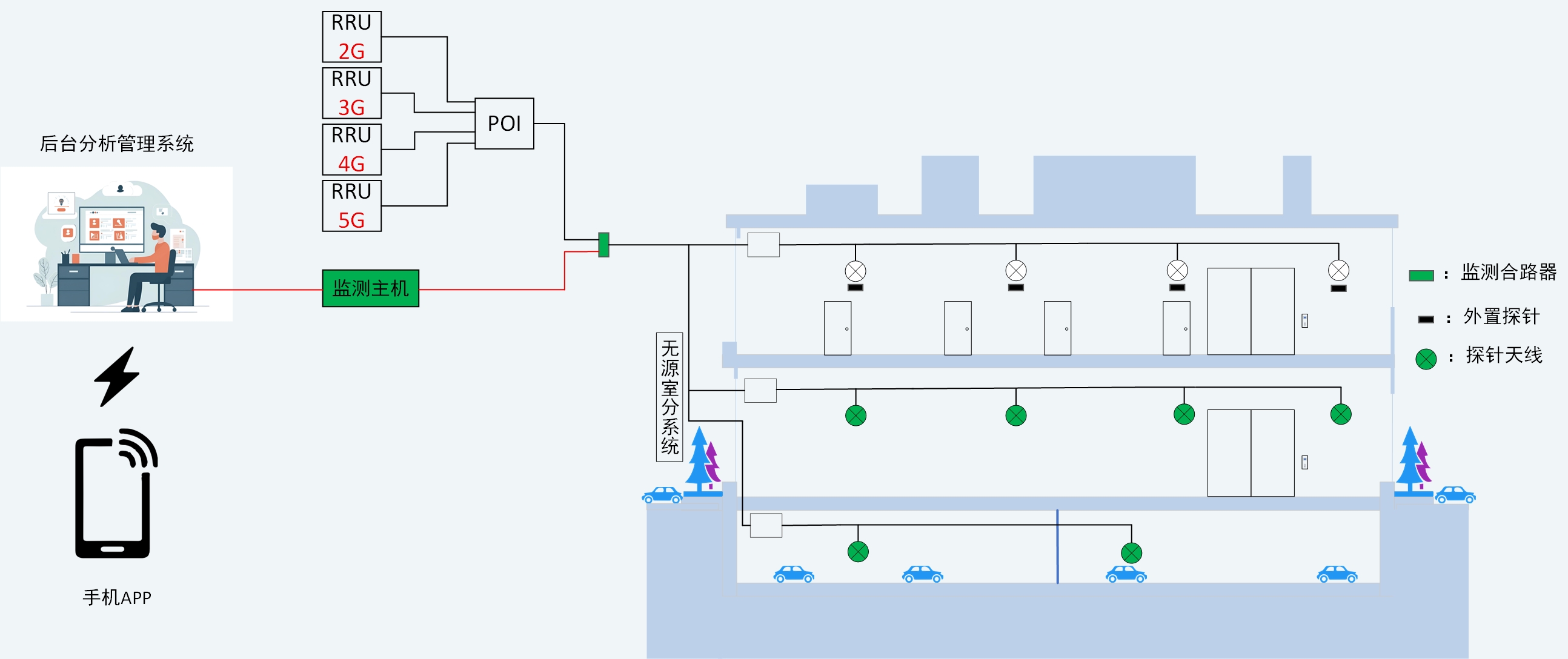 RFID无源室分监控管理系统由监测主机、合路器、探针三部分组成,主机与探针通过专用频率的收发来判断器件和链路状态,配合天线信息绑定录入,在网管系统中实现故障可视化,专门用于解决传统室分无源器件、链路无法实现实时监控、故障定位难、排查难、修复难等问题,同时帮助运营商实现资产管理。