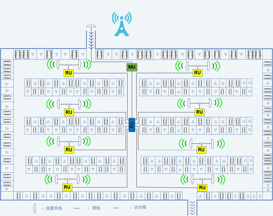 微分布系统,由控制单元、扩展单元以及覆盖单元三级设备组成,通过控制单元接收室外宏站无线信号,扩展单元连接多个覆盖单元对信号进行拉远及分布式覆盖,适用于地下停车场、商超、娱乐场所、底层商铺等场景覆盖
